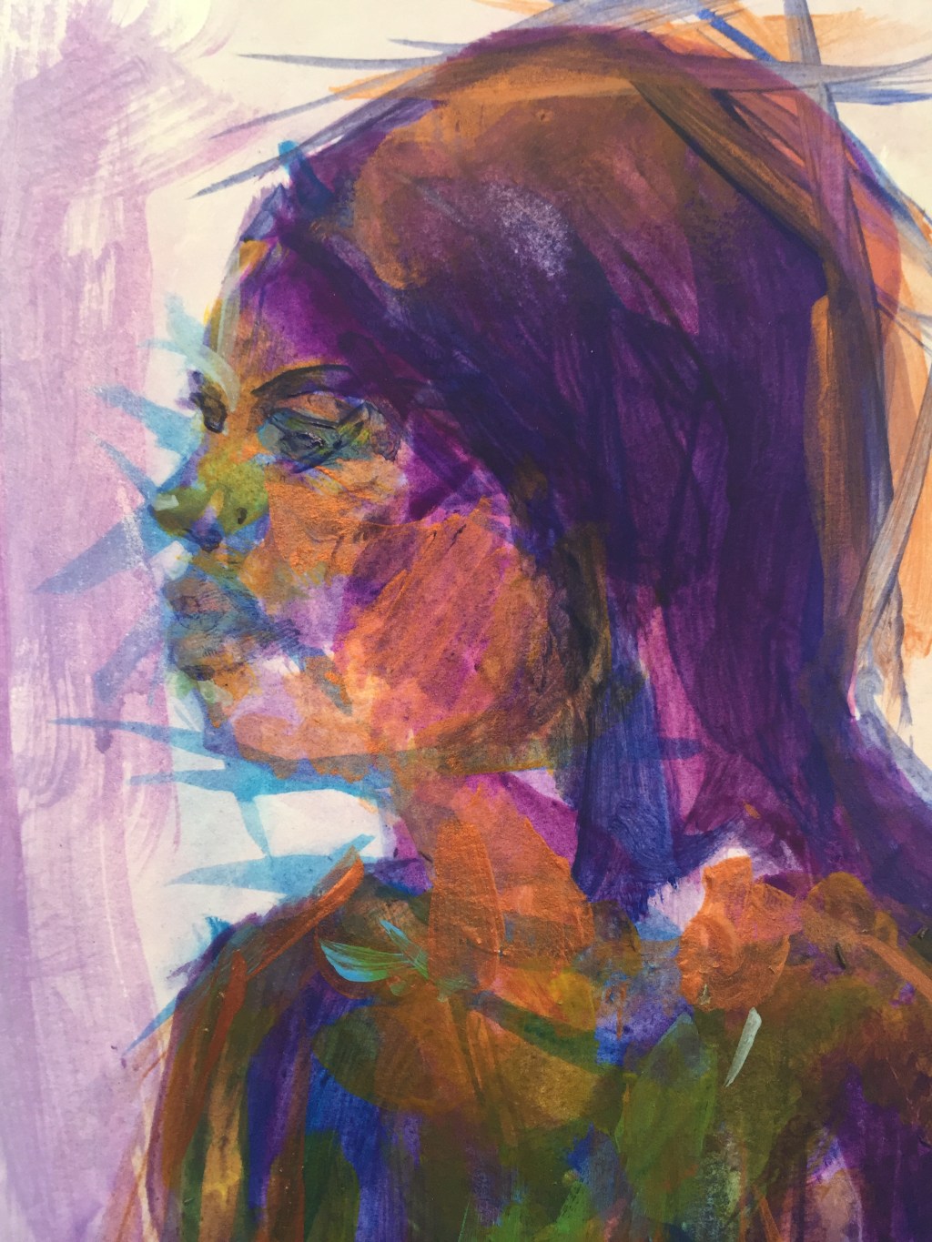 So, here is something that I’ve been working on…a life painting rescaled and mixed with my image archive. A post modem stained glass window for today’s gods and behaviors. Does it make you think? What? I’d love to know.